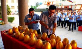 隨后鑫金山公司副總經(jīng)理王總宣布積分制第一月度獲獎(jiǎng)名單,現(xiàn)場(chǎng)為我們表現(xiàn)優(yōu)秀的獲獎(jiǎng)員工舉行了砸金蛋抽獎(jiǎng)游戲環(huán)節(jié),并準(zhǔn)備了一等獎(jiǎng)、二等獎(jiǎng)、三等獎(jiǎng)精美的獎(jiǎng)品和雙份中秋節(jié)福利。獲獎(jiǎng)?wù)咭来紊吓_(tái)砸金蛋,一件件大獎(jiǎng)被抽走,一個(gè)個(gè)臉上洋溢著喜悅的笑容。這次快樂會(huì)議無論是臺(tái)上砸金蛋的還是臺(tái)下看著的員工們都玩的很開心。王總表示“快樂會(huì)議”旨在為了快樂,為了榮耀,讓員工歡聚在一起,在公平和相互尊重的競(jìng)爭(zhēng)中,追求共同的快樂和超越,享受工作挑戰(zhàn)帶來的樂趣。鑫金山公司積分制管理快樂會(huì)議由此起步,通過雙重認(rèn)可+正向引導(dǎo),讓員工在積分制中體驗(yàn)到有趣與感動(dòng),工作壓力得以釋放,促進(jìn)員工向好、向上。