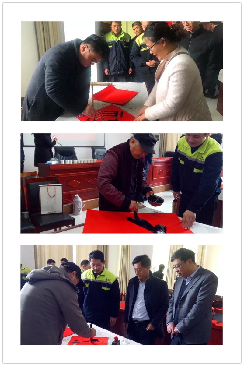 新春將至,為深入宣傳習(xí)近平新時(shí)代中國(guó)特色社會(huì)主義思想和黨的十九屆四中全會(huì)精神,弘揚(yáng)中華優(yōu)秀傳統(tǒng)文化,增強(qiáng)職工的幸福感,營(yíng)造文明、健康、祥和的節(jié)日氛圍。1月10日上午,臺(tái)兒莊區(qū)總工會(huì)、臺(tái)兒莊畫(huà)院組織優(yōu)秀書(shū)法家走進(jìn)鑫金山,開(kāi)展2020年春節(jié)“送萬(wàn)福進(jìn)萬(wàn)家”書(shū)法公益活動(dòng),為鑫金山員工們現(xiàn)場(chǎng)書(shū)寫(xiě)“福”字和春聯(lián),送上了歡樂(lè)和春節(jié)祝福。